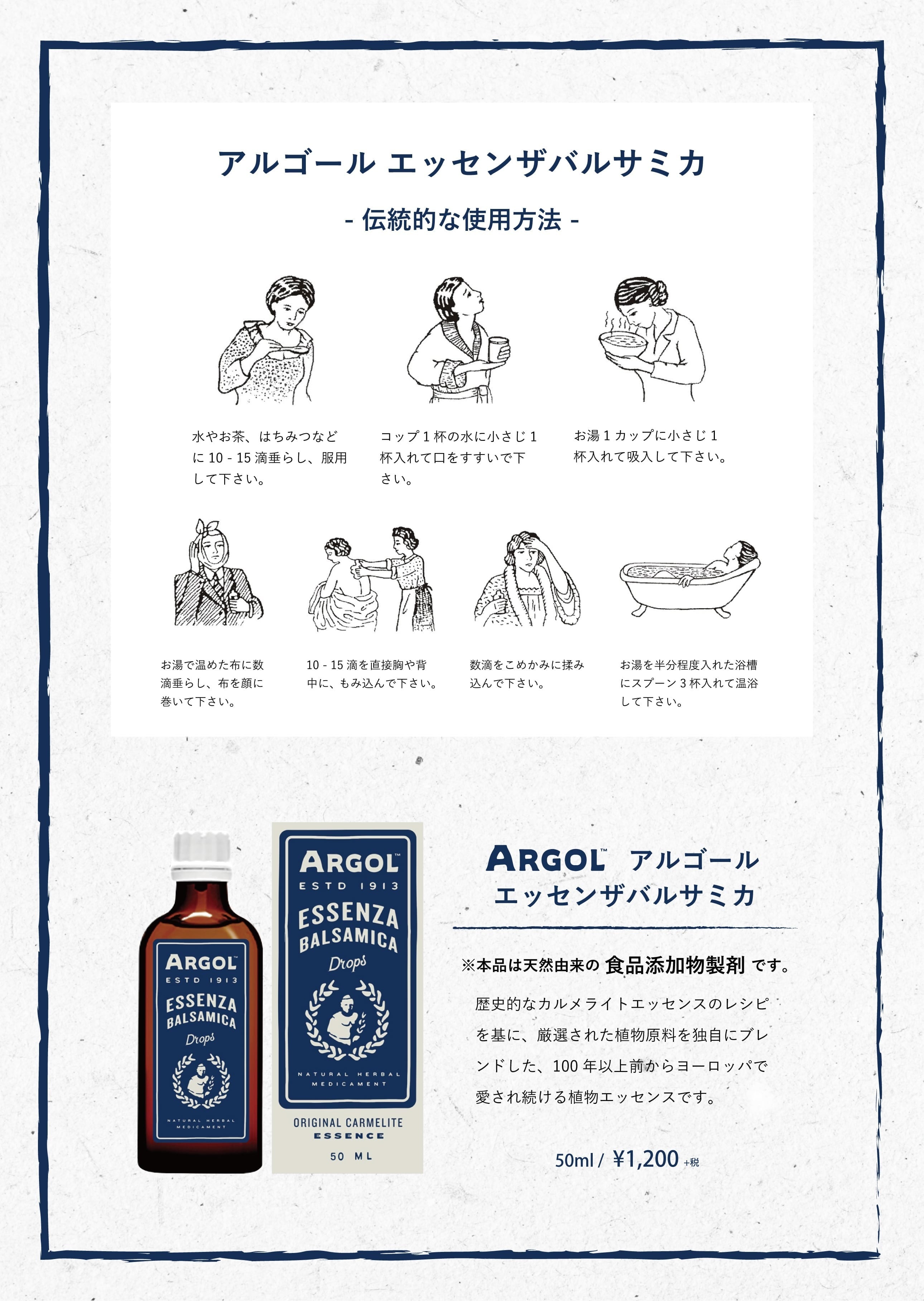 “ アルゴールエッセンザバルサミカ ” は、ヨーロッパにおいて100年以上の間、家庭的な予防薬や応急処置薬として愛され、EUにおける数々の賞を受賞しています