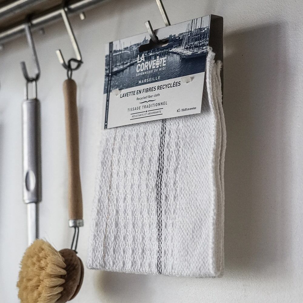 LA CORVETTE(ラ・コルベット)の環境にやさしく耐久力に優れたリサイクルファイバークロス。家中のあらゆるお掃除におすすめ。 展開サイズ 26.5×34.5cm。リサイクル素材を採用しているため、ステッチのカラーが画像と異なる場合があります。