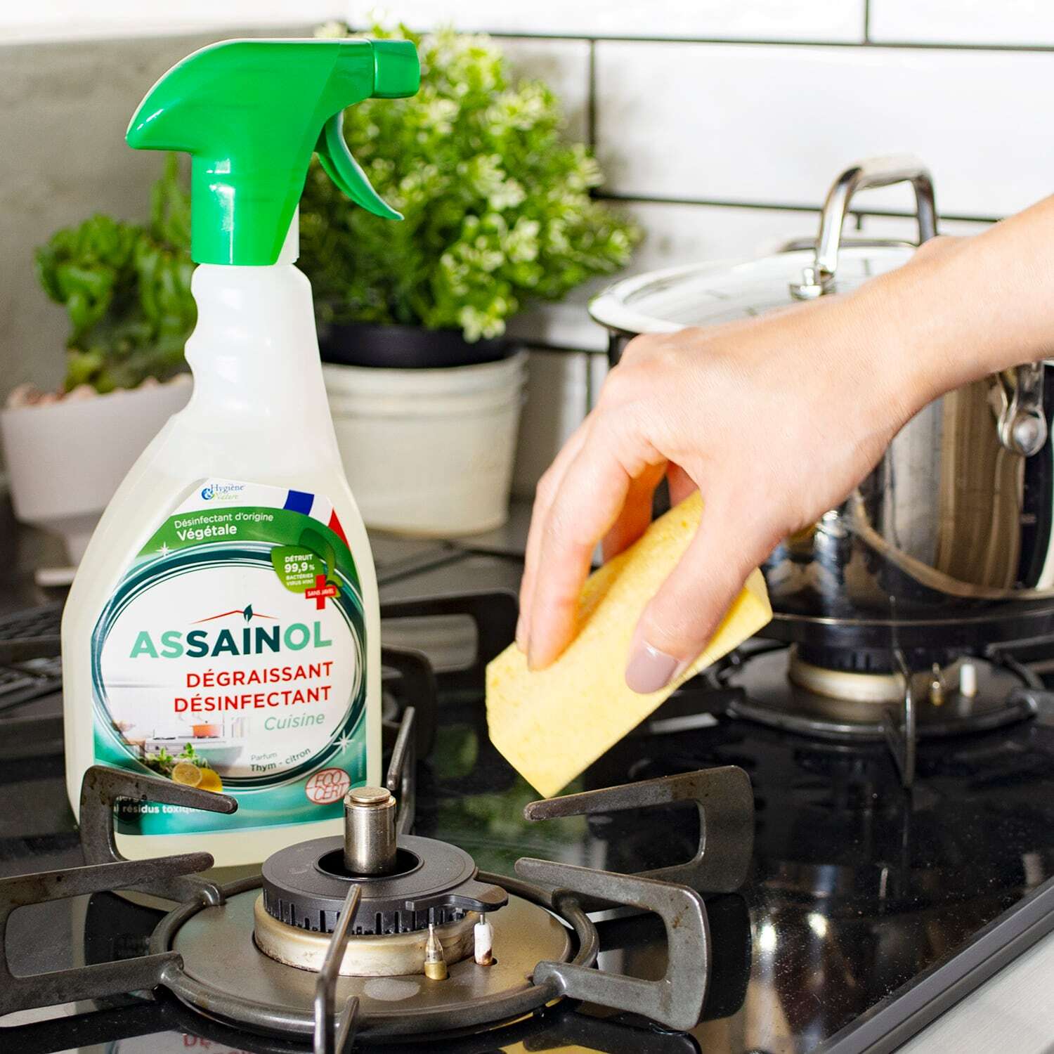ASSAINOLは、高い生分解性で地球にやさしく、天然由来の乳酸で除菌もできるフランス生まれの4-in-1マルチクリーナー。これ1本であらゆる表面の汚れを洗浄、脱脂、水垢を除去し、除菌します。天然香料ユーカリの清涼感のある香り。